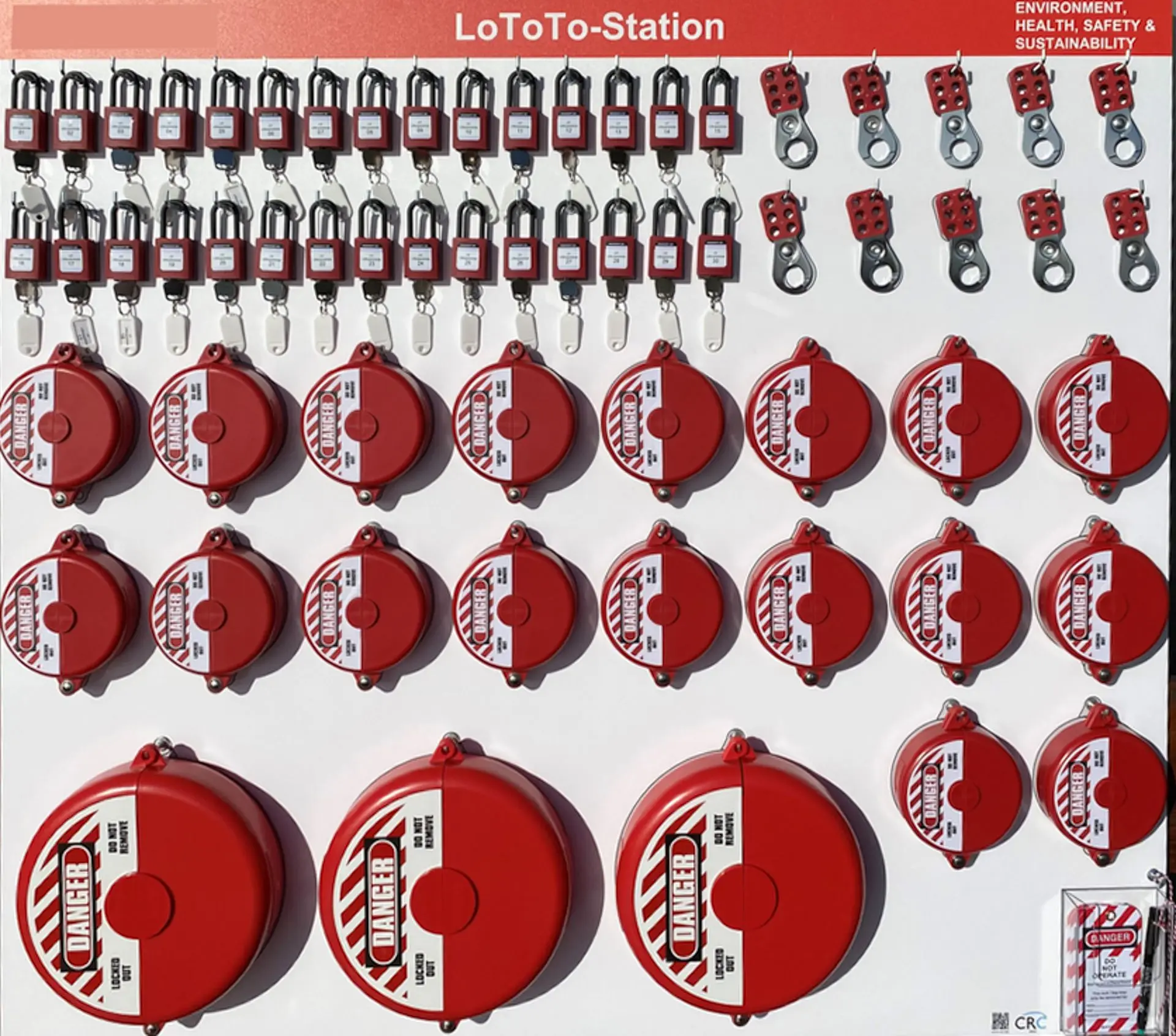 LOTO dort, wo es gebraucht wird: Das Shadowboard sorgt für Ordnung und Übersicht. Mit Schattenkonturen für Schlösser, Tags und Sperren siehst Du sofort, wenn etwas fehlt.