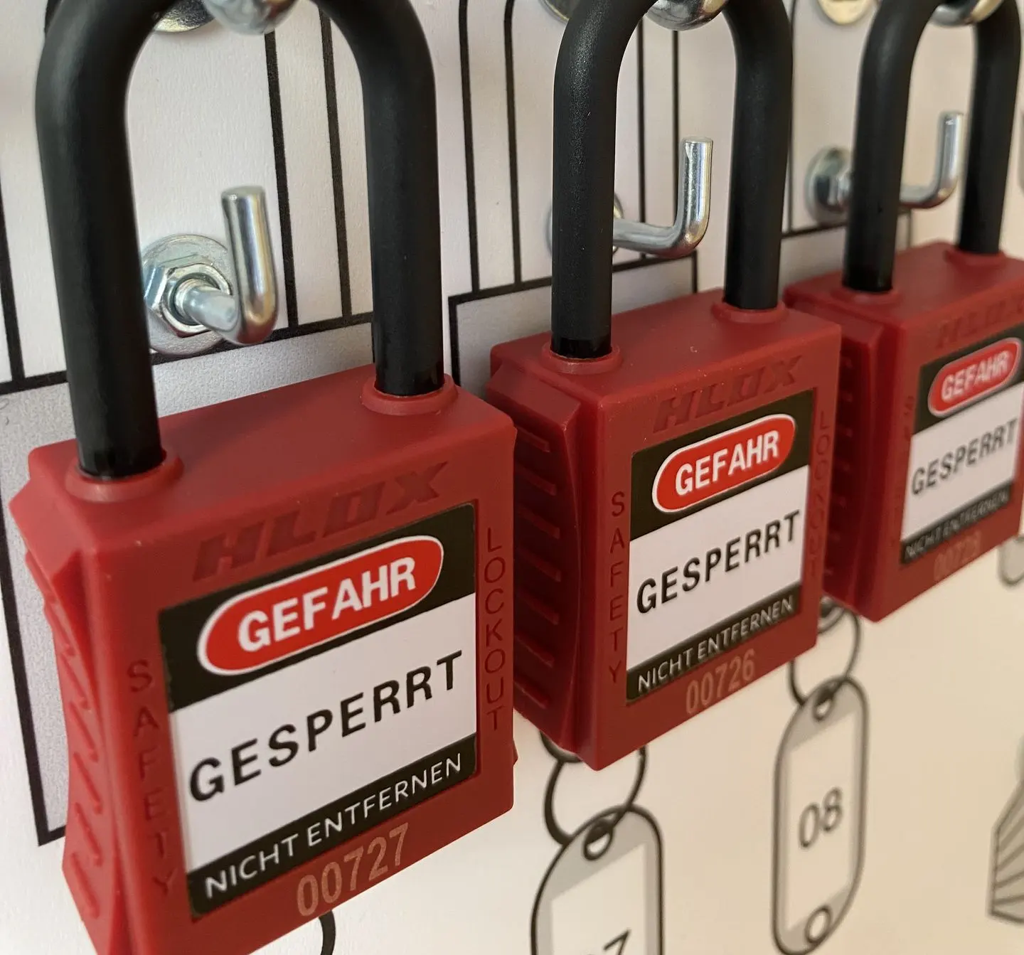 Sperren, Kennzeichnen, Verantwortung klarmachen: Die passenden LOTO-Schlösser von HLOX sorgen für eindeutige Zuständigkeiten und fachgerechte Absicherung.
